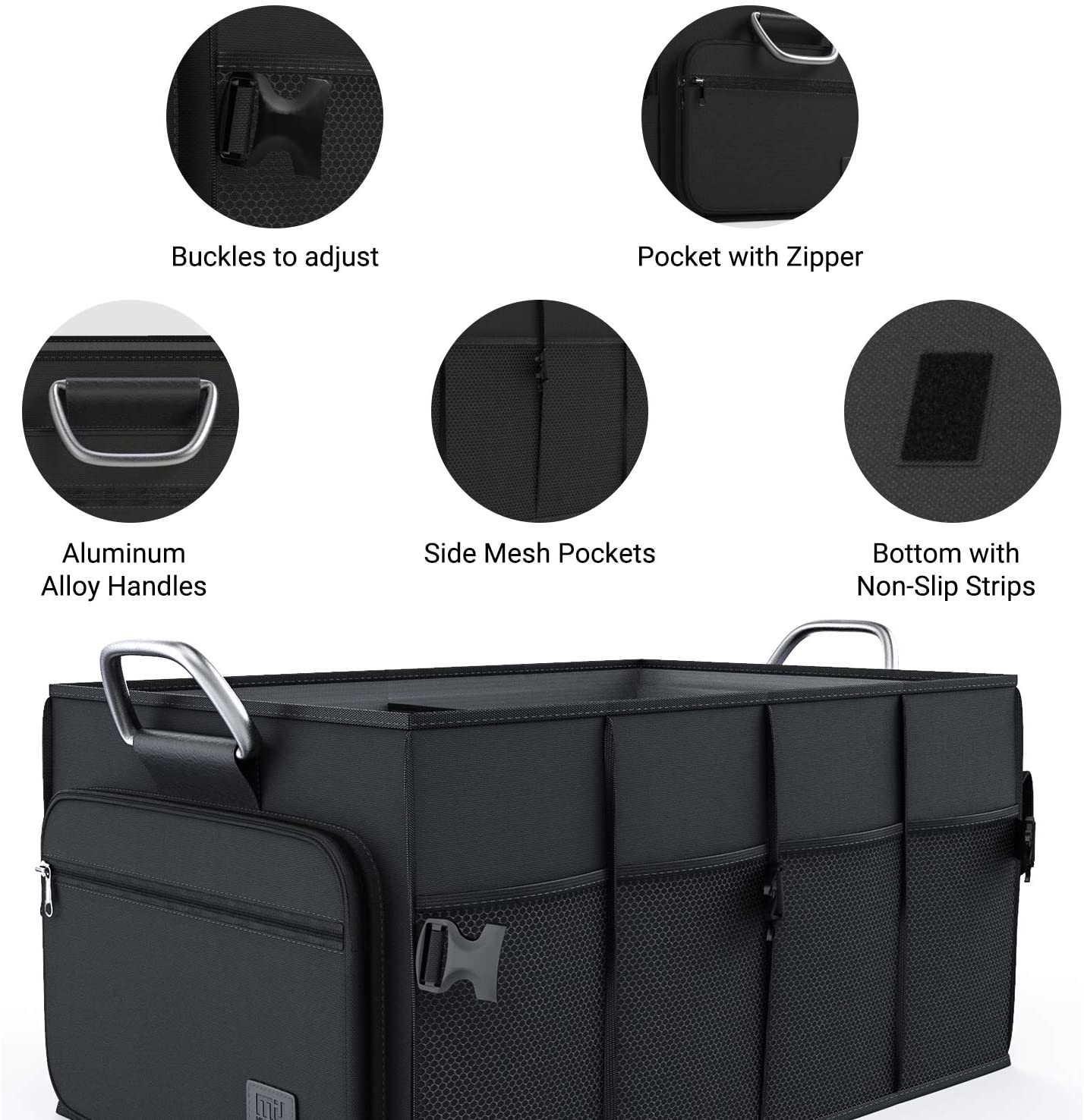 Foldable Car Trunk Organizer Washable Automotive Storage Box Suitable for SUV with 2 Straps(Black)